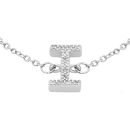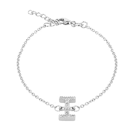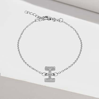 I Initial Bracelet 7.5 Inch in Sterling Silver Rhodium Plated Cubic Zirconia 6.5mm x 11mm