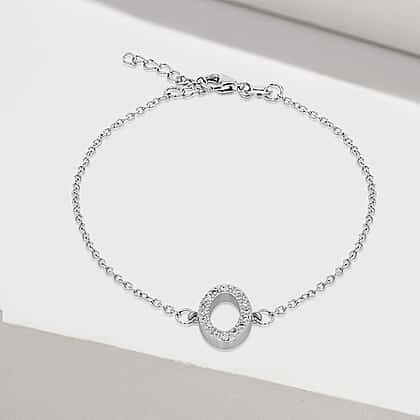 Cubic Zirconia Bracelet (Size - 7.5) in Rhodium Overlay Sterling Silver 0.09 ct 0.090 Ct.