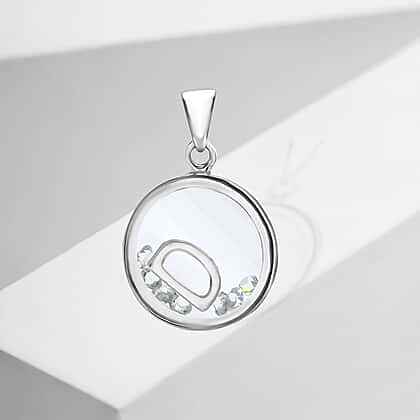 D Initial Floating Case Pendant in Sterling Silver Cubic Zirconia 14mm x 22mm