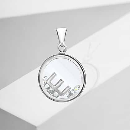 E Initial Floating Case Pendant in Sterling Silver Cubic Zirconia 14mm x 22mm
