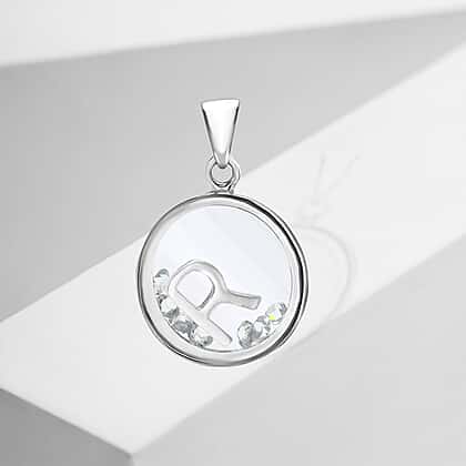 R Initial Floating Case Pendant in Sterling Silver Cubic Zirconia 14mm x 22mm
