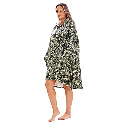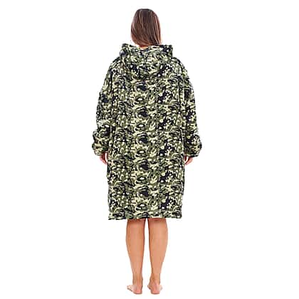 Adults Buffalo Oversized Fully Sherpa-Lined Blanket Hoodie With Pockets (One Size) - Green - Black Camoflage