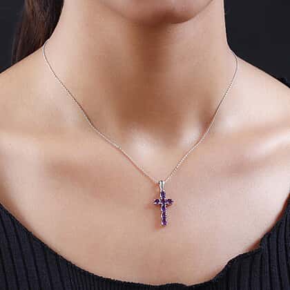Amethyst Cross Pendant with Chain (Size 20) in Platinum Overlay Sterling Silver 3.00 Ct.