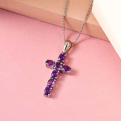 Adorn your neckline with this African amethyst cross pendant and spread the sparkle. It is decorated with oval-shaped amethyst gemstones secured in a prong setting giving out a bright purple colour. It is made from a 925 sterling silver with a platinum overlay and smooth back gallery giving you a comfortable fit. You can pair it with an amethyst earring to complete the look.