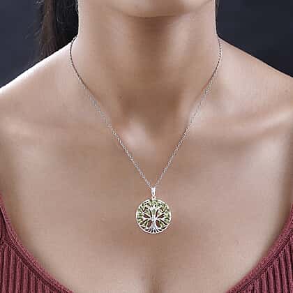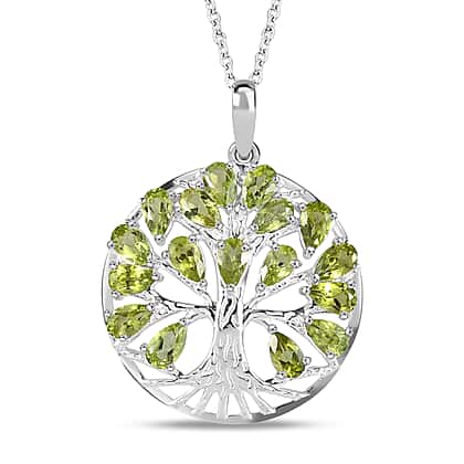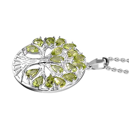 Hebei Peridot Sterling Silver Tree of Life Pendant With Chain (Size 20) 4.25 Ct, Silver Wt. 7.44 Gms.
