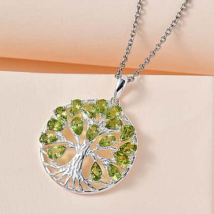 4.25 Ct. Hebei Peridot Tree of Life Pendant in Sterling Silver With Chain (Size 20)