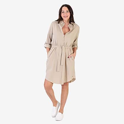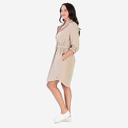 Anamor Solid Color Shirt Dress (Size L-XL) - Beige