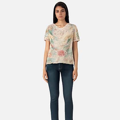 Anamor Womens Abstract Leaf Print Casual T-Shirt (Size XL) - Lavender