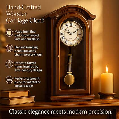 Vintage Home Decor Luxury Range - Antique Style Wooden Carriage Clock with Swinging Pendulum (Size 27x56x1 cm) - Dark Brown