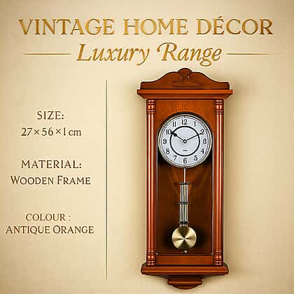 Last in Stock - Vintage Home Decor Luxury Range - Antique Style Wooden Carriage Clock with Swinging Pendulum (Size 27x56x1 cm) - Orange