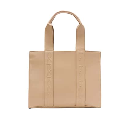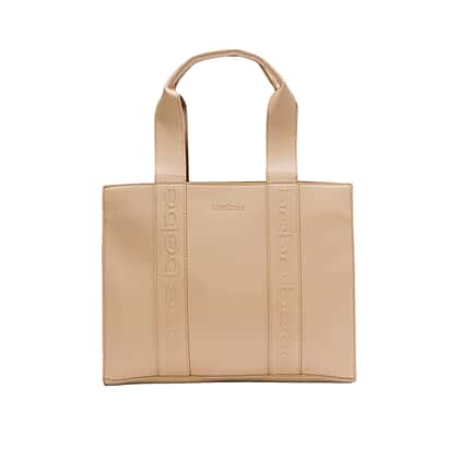 BEBE Vegan Leather Hana Canvas Tote Bag - Tan