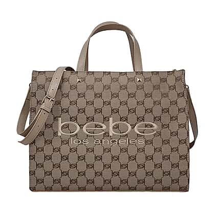 The Designer Closeout - - BEBE Luxe Everyday Jacquard Tote with Iconic Bebe Logo Pattern - Beige