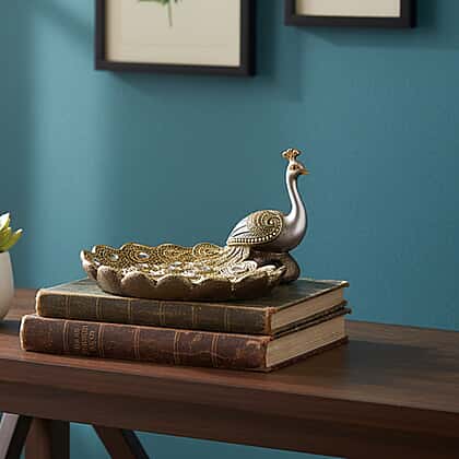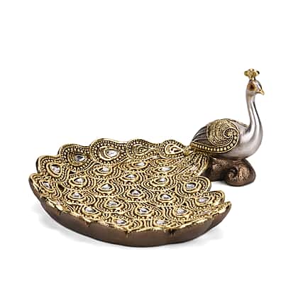 Bliss - Beyond Stunning Peacock Plate (23 x 19 x 11 cm) - Silver - Gold