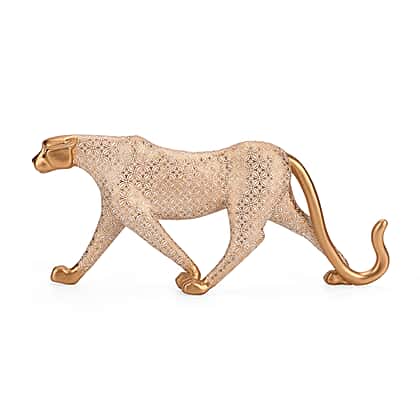 Whether you have a rustic living room or are looking to add a touch of wildness to your interiors, this White-Coated Antique Leopard with Gold Foil figurine makes for a great pick. The figurine features a mid-stride leopard in a graceful motion. This piece is adorned with the floral lattice motif pattern that helps to add a royal charm to the design. This piece glows in lustrous gold tones and exudes glamour. It can work with a wide range of patterns and can look smart in most of the classic settings. Place it on your centre table or near an ornate muted tone vase to add a bit of glamour and edge to your interiors.