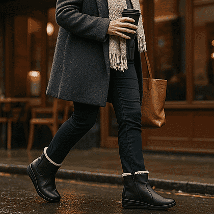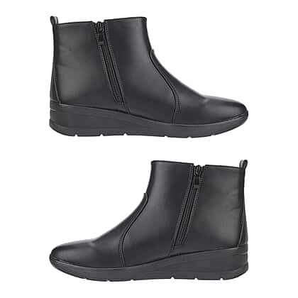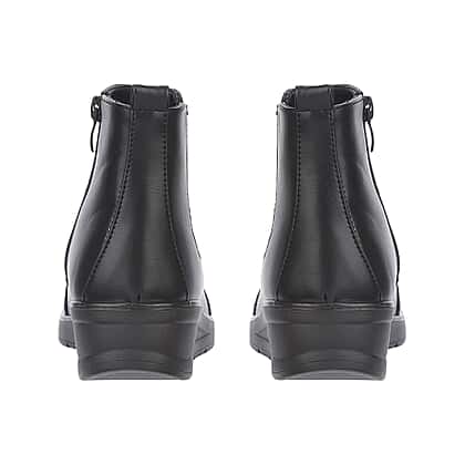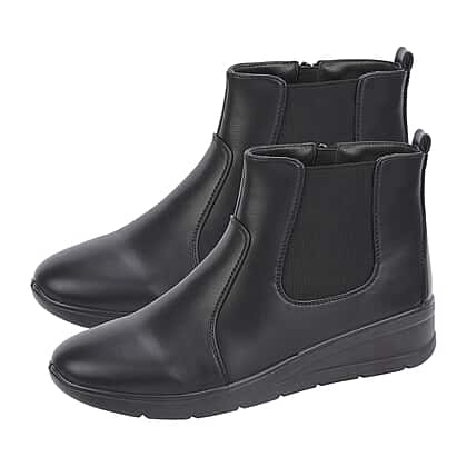 Step into effortless comfort with the LJ&R BRAMBLE Ladies' Gusset Ankle Boot, perfect for everyday household activities or casual outings. Made from smooth PU material, these ankle boots feature elasticated side gussets for flexibility and a convenient inside zip for hassle-free wear. The cushioned low wedge sole provides excellent arch support, making them ideal for staying on your feet while doing chores or running errands. Minimal yet refined stitching elevates the look, allowing you to pair these versatile boots with both loungewear and casual outfits. Whether indoors or out, they’re the perfect blend of practicality and style.