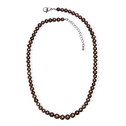 Bring nature's beauty to your wardrobe with this brown dyed pearl necklace, designed exclusively for you to add extra charm to your outfit. This necklace features a natural pearl in a beaded design that radiates a warm brown hue. Meticulously crafted in pure stainless steel, this necklace ensures durability and lasting lustrous shine. The metal is hypoallergenic, making it suitable for sensitive skin, offering comfort. Features a lobster clasp for security and comfort fit, making it suitable to wear throughout the wear. This is perfect for special evening parties and beach vibes.