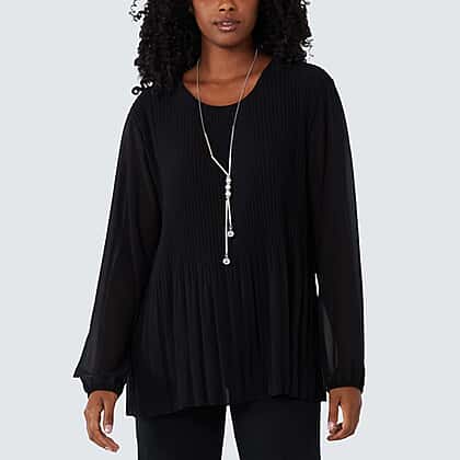 Chilli Charm Pleated Long Sleeve Necklace Top (One Size 8 - 18) - Black