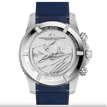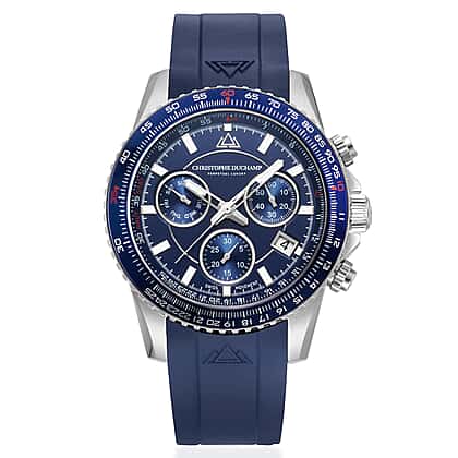Christophe Duchamp Velocite V2 Swiss Z60 Chronograph 10ATM Mens Watch with Blue Dial and Silicone Strap in Silver Stainless Steel Case