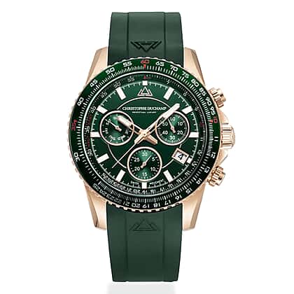 Christophe Duchamp Velocite V2 Swiss Z60 Chronograph 10ATM Mens Watch with Green Dial and Silicone Strap