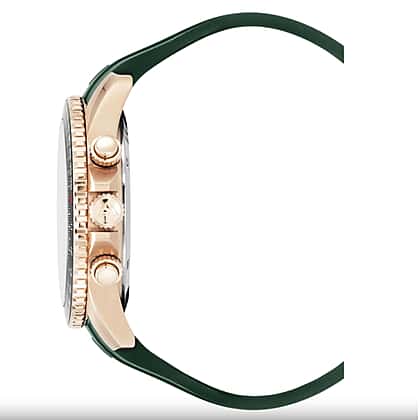 - Showcases a bold green chronograph dial with detail