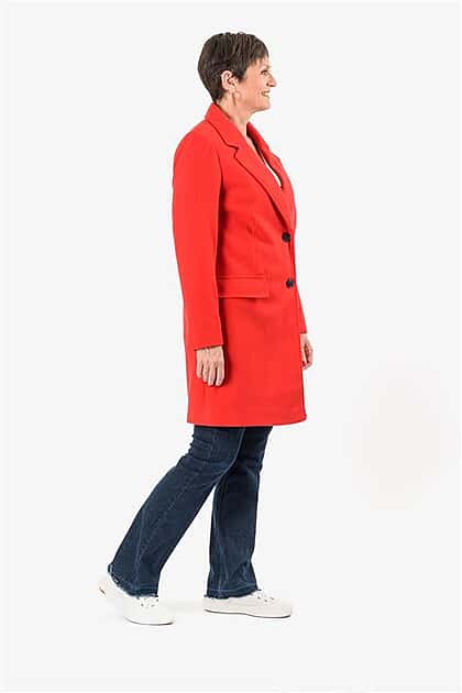 Classic Crombie Tailored Coat With Pockets (Size M) - Red