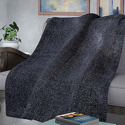 Chenille Wrinkle and Stain Resistance Throw with Border - Charcoal