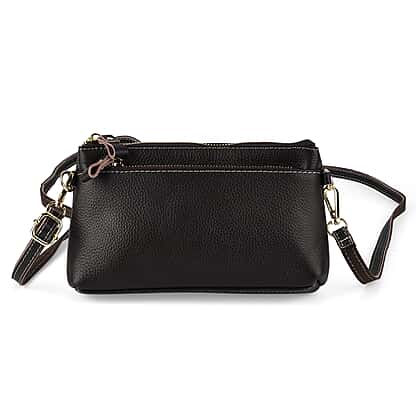 BAG OFFER OF MONTH - 100% Exquisite Genuine Leather Premium Crossbody Bag 3-in-1 Clutch - Wristlet- Dark Coffee