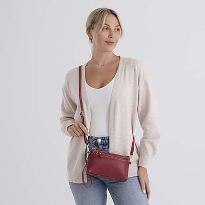 100% Exquisite Genuine Leather Premium Crossbody Bag 3-in-1 Clutch - Wristlet - Red