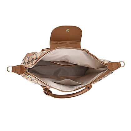 Designer Inspired Monogram Top Handle Luxe Tote Bag with Crossbody Strap - Brown - Beige