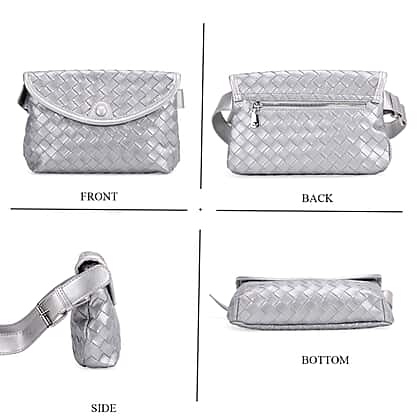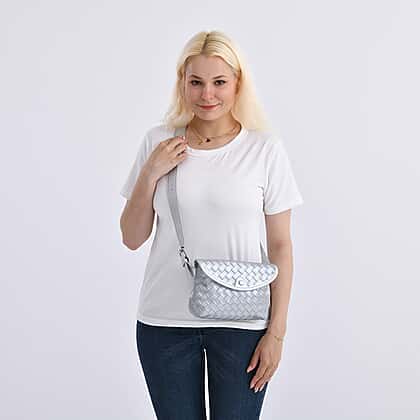 Shine with subtle sophistication thanks to this silver textured crossbody handbag. The polished leatherette finish and woven detailing add luxe appeal, while the interior features a durable polyester lining and a handy zip pocket. Sized at 24x17x5cm, it’s ideal for carrying your phone, wallet, and everyday must-haves. The magnetic snap button on the flap keeps things secure and stylish, and the adjustable 120cm strap gives you the freedom to wear it however suits your mood or outfit.