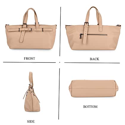 Refresh your everyday accessories with this genuine leather belt-detail crossbody bag in light khaki. Its smooth finish and subtle tone make it a versatile piece that complements any outfit with ease. Designed with style and practicality in mind, it features elegant belt detailing across the front and a detachable 130 cm strap for adaptable wear. The well-structured interior, lined with soft polyester, offers two zipped and one slip pocket for everyday organisation, while two outer zipped pockets keep essentials within reach. Lightweight yet spacious, it’s ideal for daily errands or relaxed weekend outings.