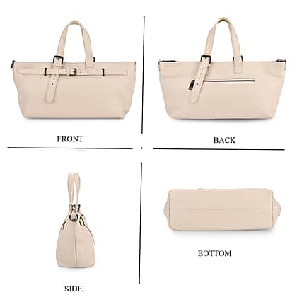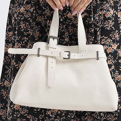 Add understated elegance to your wardrobe with this genuine leather belt-detail crossbody bag in off white. The refined neutral tone pairs perfectly with both formal and casual looks, while the belt accent lends a chic edge. Made from premium leather with a smooth, textured feel, it comes with a detachable 130 cm strap for flexible styling. Inside, a polyester-lined interior offers two zipped and one slip pocket, complemented by two exterior zipped pockets for added convenience. Measuring 32x12x19 cm, it’s compact yet spacious enough to hold your daily must-haves in style.