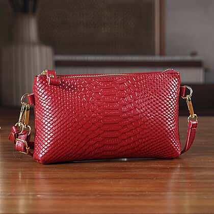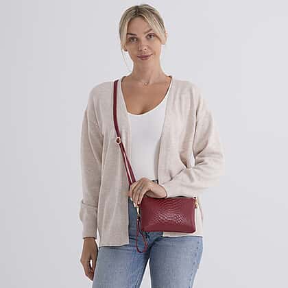 Genuine Leather Sling Bag with Detachable Strap (140 cm) - Burgundy
