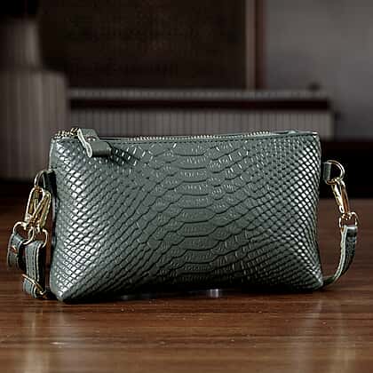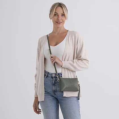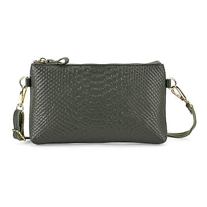 Genuine Leather Sling Bag with Detachable Strap (140 cm) - Dark Green