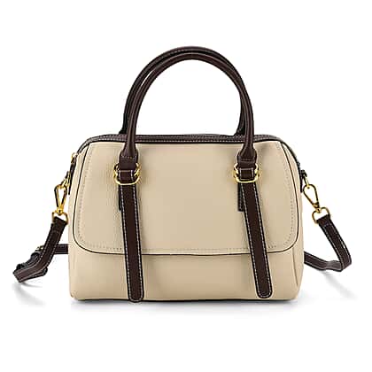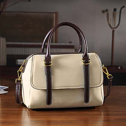 100% Geniune Leather Floral Embossed Tote Bag - Ivory