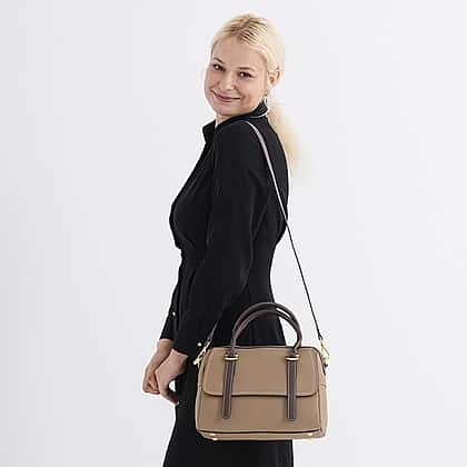 100% Geniune Leather Floral Embossed Tote Bag - Taupe