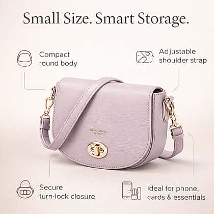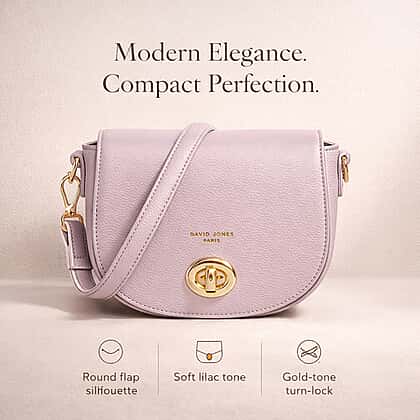 David Jones Stylish Round Flap Compact Shoulder Bag Lilac