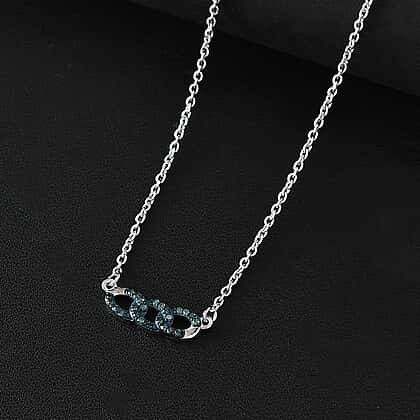 Blue Diamond Necklace (Size - 20) with Lobster Clasp in Rhodium Overlay Sterling Silver 0.20 Ct