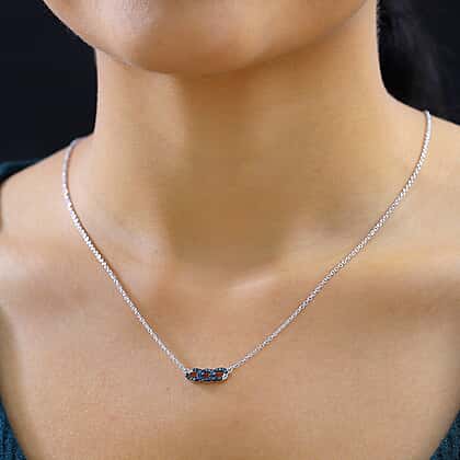 Blue Diamond Necklace (Size - 20) with Lobster Clasp in Rhodium Overlay Sterling Silver