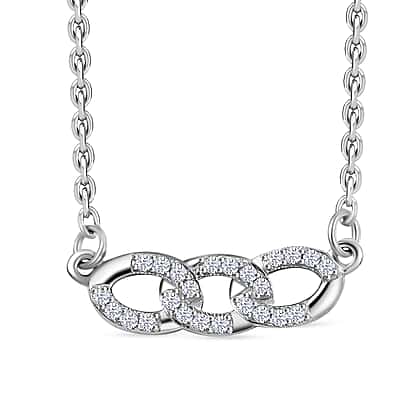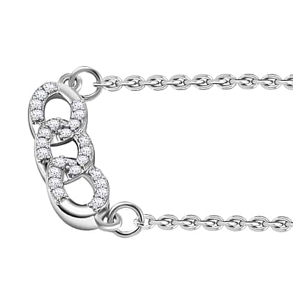 White Diamond Necklace (Size - 20) with Lobster Clasp in Rhodium Overlay Sterling Silver 0.20 Ct