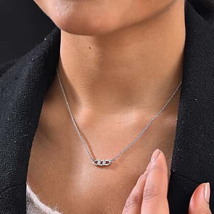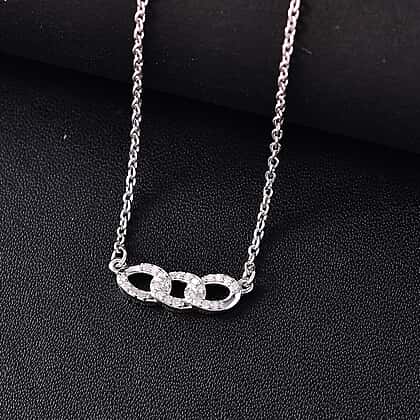 White Diamond Necklace (Size - 20) with Lobster Clasp in Rhodium Overlay Sterling Silver