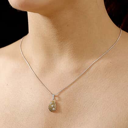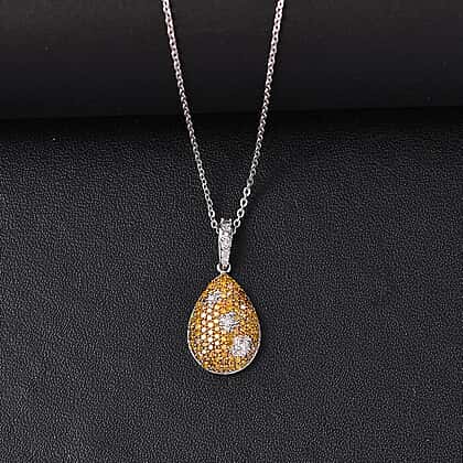 Yellow Diamond & White Diamond Pendant with Chain (Size - 20) in Rhodium Overlay Sterling Silver 0.50 Ct, Silver Wt. 7.35 Gms.