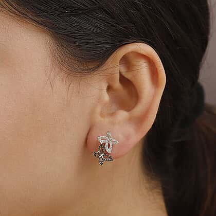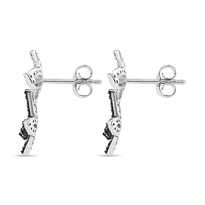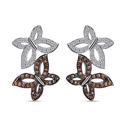 White Diamond, Red Diamond Butterfly Push Post Earring in Rhodium Overlay Sterling Silver 0.50 Ct.