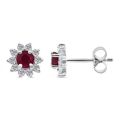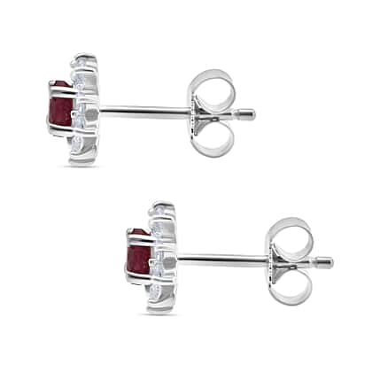 D'Joy African Ruby & White Zircon Earring with Push Back in Rhodium Overlay Sterling Silver 2.06 Ct.