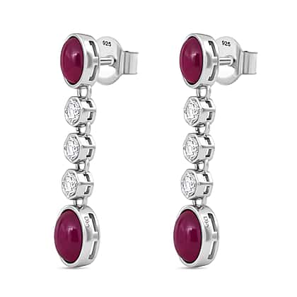 D'Joy Cabo Delgado Ruby & White Zircon Earring with Push Back in Rhodium Overlay Sterling Silver 5.09 Ct.