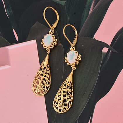 D'Joy Ethiopian Opal Earring with Lever Back in Yellow Gold Plated Sterling Silver 1.48 Ct, Silver Wt. 5.15 Gms.