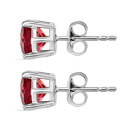 D'Joy Lab Grown Padparadscha Sapphire Solitaire Stud Push Post Earring in Platinum Overlay Sterling Silver 3.72 Ct.