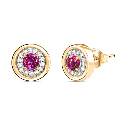 D'Joy Lab Grown Bixbite & Moissanite Stud Push Post Earring in 18K Vermeil Yellow Gold Plated Sterling Silver