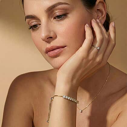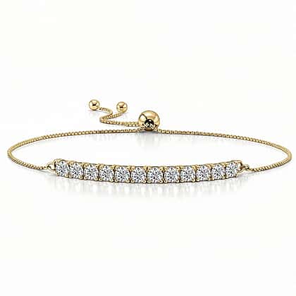 D'Joy Moissanite Bolo Adjustable Bracelet (Size 10.5) in 18K Yellow Gold Plated Sterling Silver 1.35 Ct.