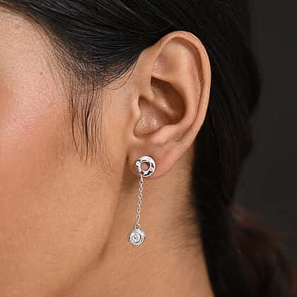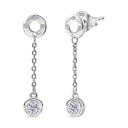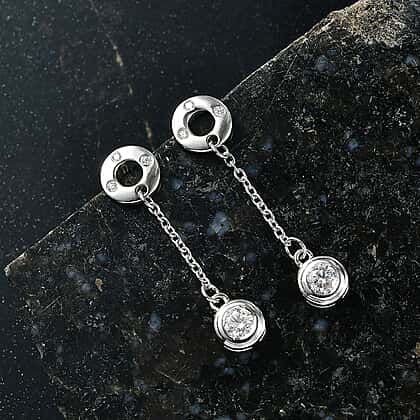 Displaying a gorgeous embodiment of brilliance, this D'joy moissanite drop earring is a refined beauty that captures attention with every movement.  Expertly crafted with a round, dazzling moissanite stone, this masterpiece offers extraordinary brilliance and clarity. Made with 925 sterling silver for durability and enhanced with lavish platinum overlay for lasting shine. The hypoallergenic properties of metal ensure safety for skin; this piece is finished with a push-back closure for a comfortable fit. The brilliance and luster of the lightweight design make the piece perfect for everyday wear.
